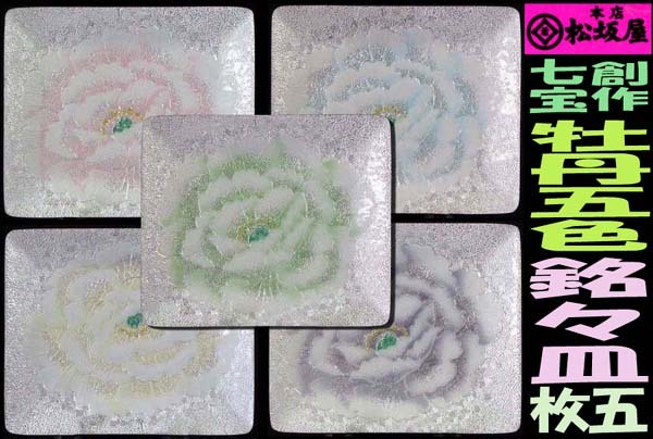 - ★☆本物保証☆松坂屋百貨店・オリジナル・創作七宝.牡丹絵.銘々皿.菓子皿・五枚組・日本伝統工芸の集大成・未使用保管品・共箱.栞☆★