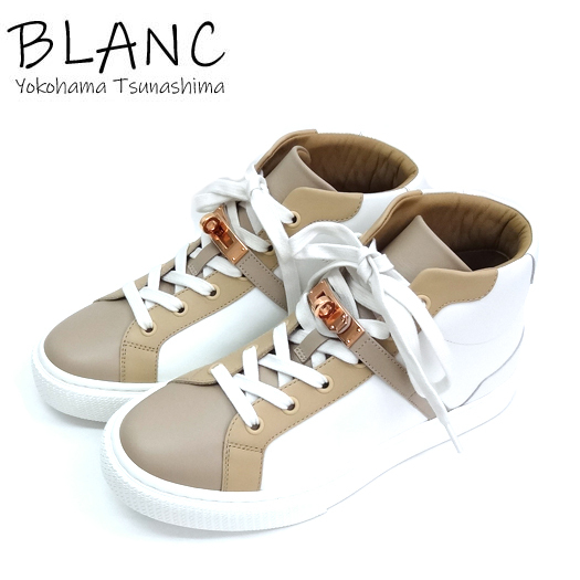 > エルメス デイドリーム ハイカット スニーカー #37 24cm ホワイト ベージュ レザー ローズゴールド金具 HERMES 横浜BLANC