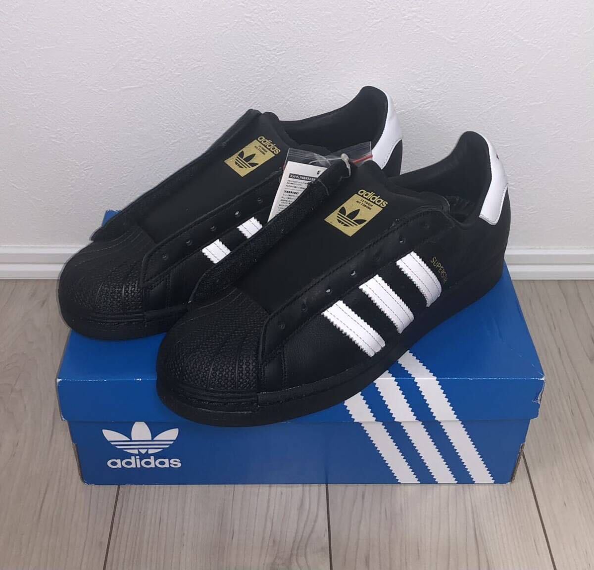 > 新品 adidas SUPERSTAR LACELESS FV3018 27.5cm アディダス オリジナルス スーパースター レースレス ブラック ホワイト 黒 白 super star