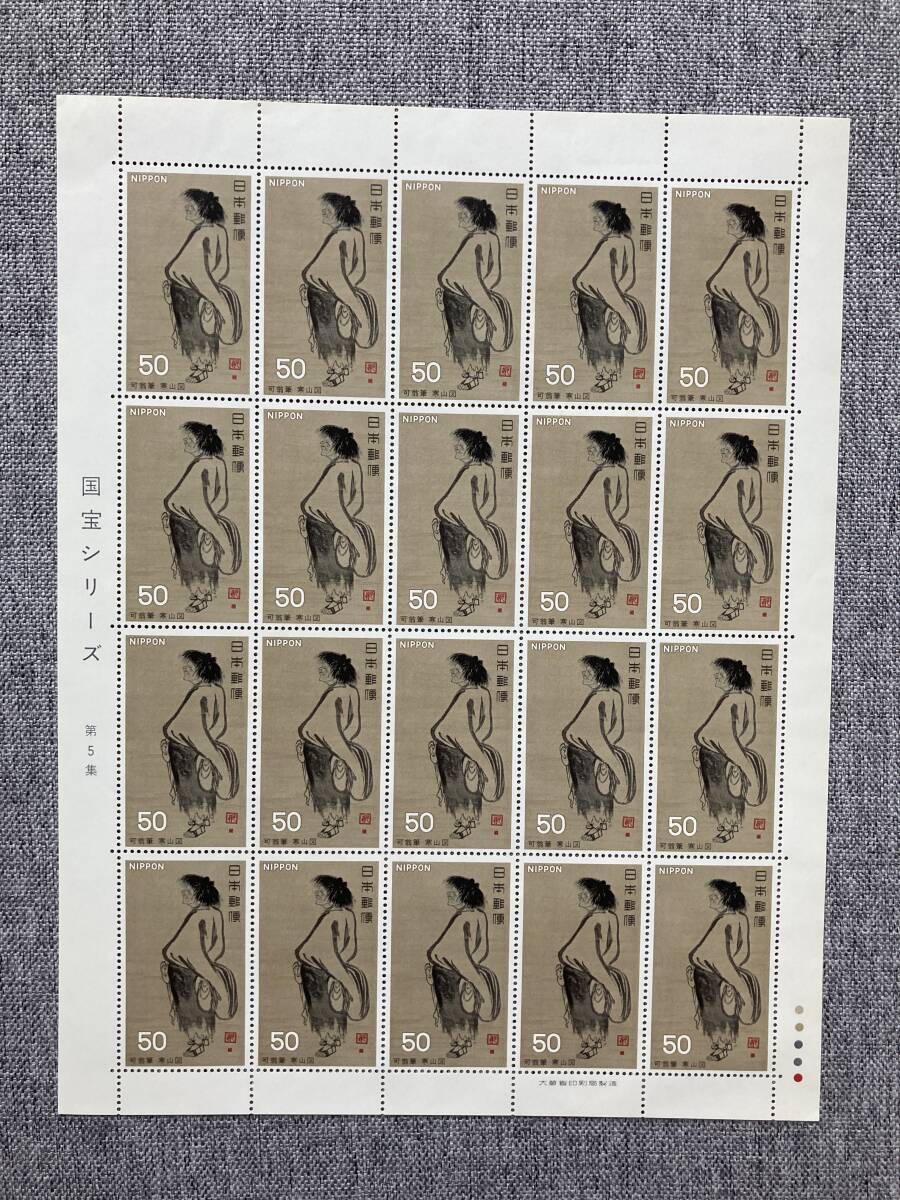 - ★未使用 第2次 国宝シリーズ 第5集 寒山図 可翁筆 1977年 昭和52年 切手シート 50円 20枚 日本郵便