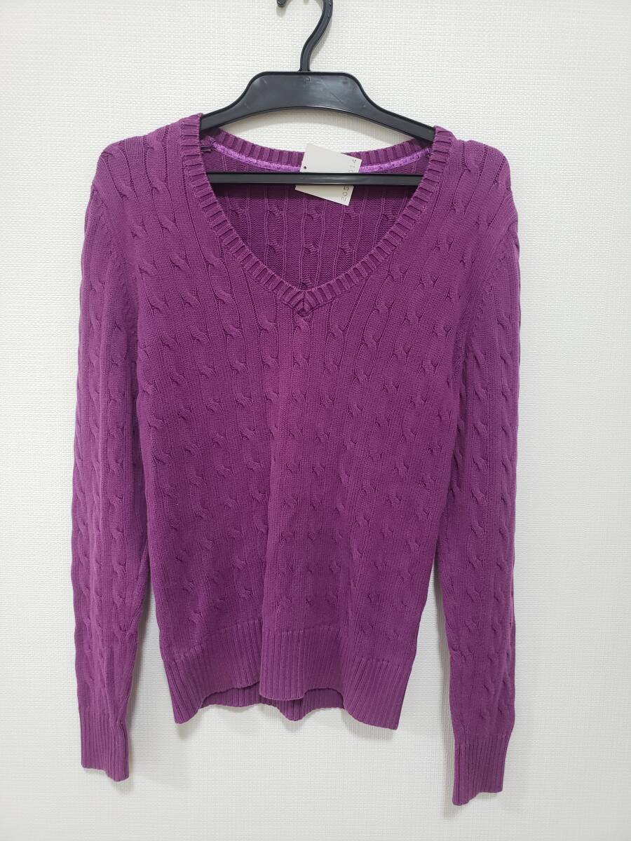 > TOMMY HILFIGER トミーヒルフィガー ニット セーター スウェット USED 紫 L Vネック