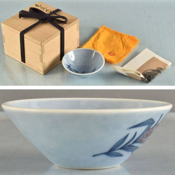 C09035 十三代今右衛門 色絵吹墨草花文ぐい呑 掻銘上作:真作