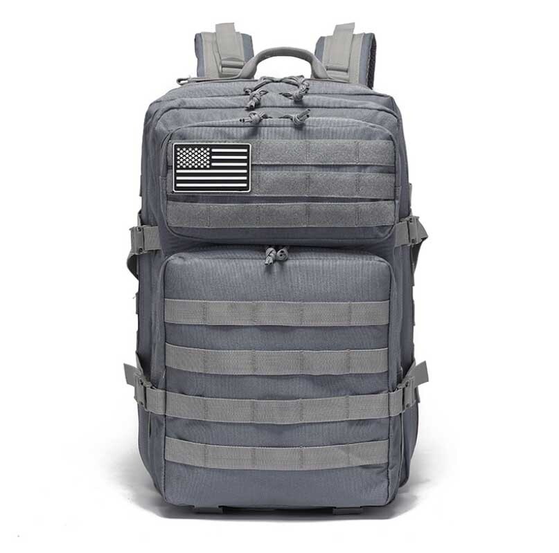 > グレー バックパック 45L アウトドア 大容量リュックサック 多機能 MOLLEシステム 宿泊 防災 旅行 丈夫 通学 登山 頑丈