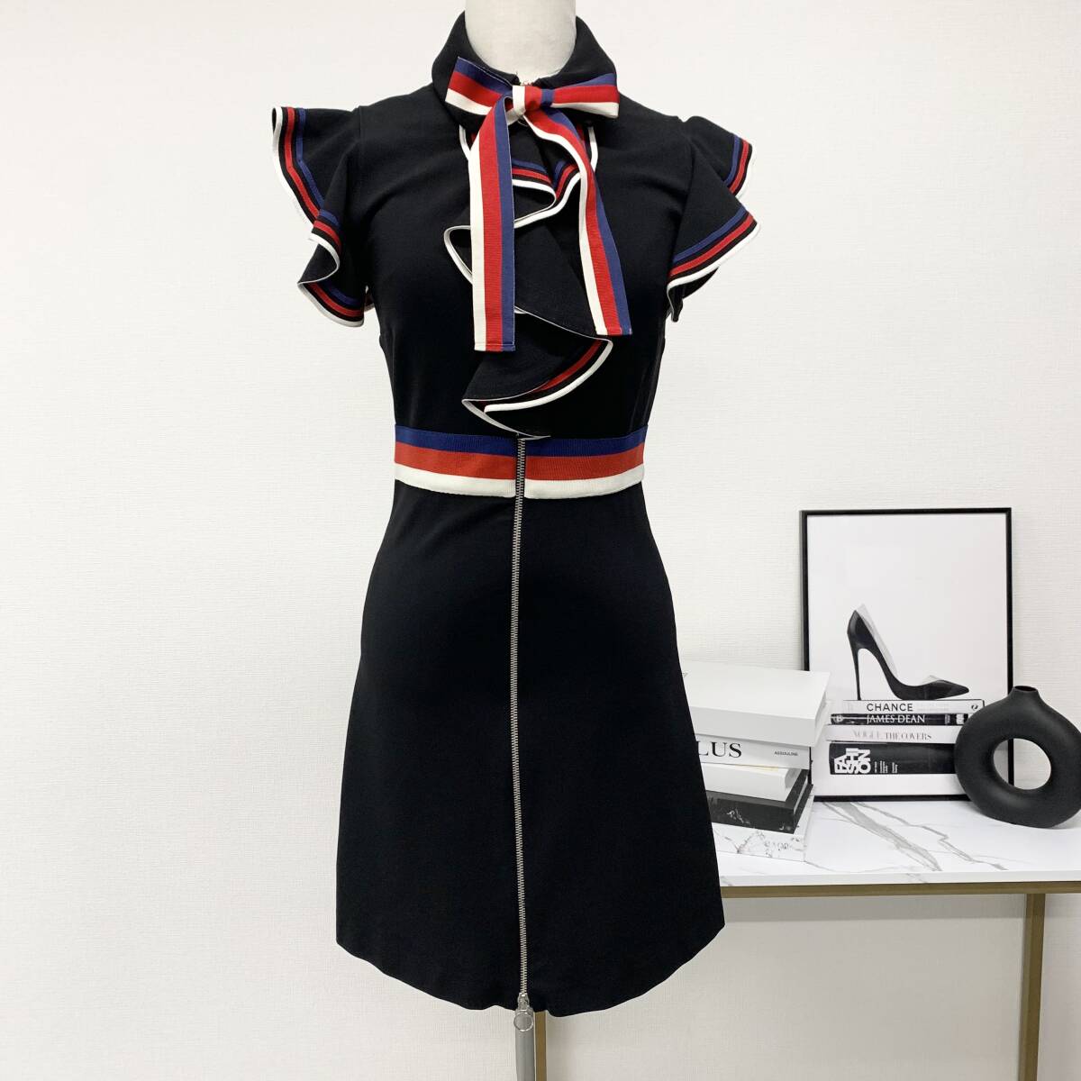 - 9903 グッチ ワンピース フリル ノースリーブ ジップ ブラック