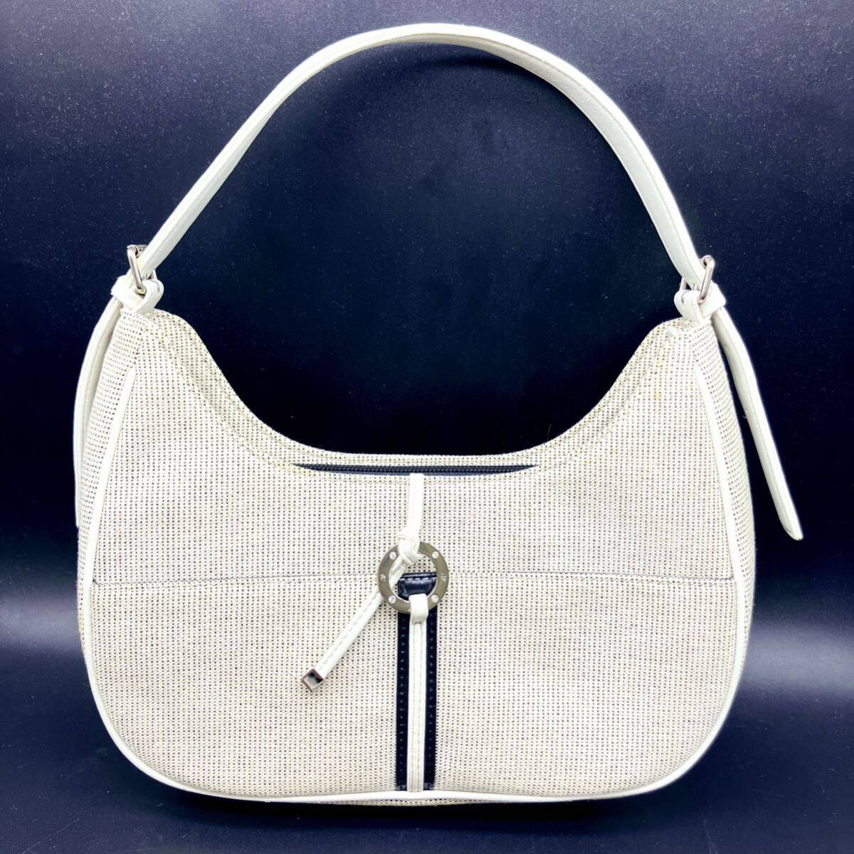 > 【レア】4°C ヨンドシー ワンショルダーバッグ レザー×キャンバス ホワイト ハンド トート 手提げ 肩掛け ミニトート ヴィンテージ D-12