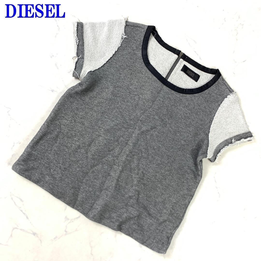 - DIESEL ディーゼル 半袖切り替えデザイントップス グレーカジュアル 袖切りっぱなし加工 コットン S C1300