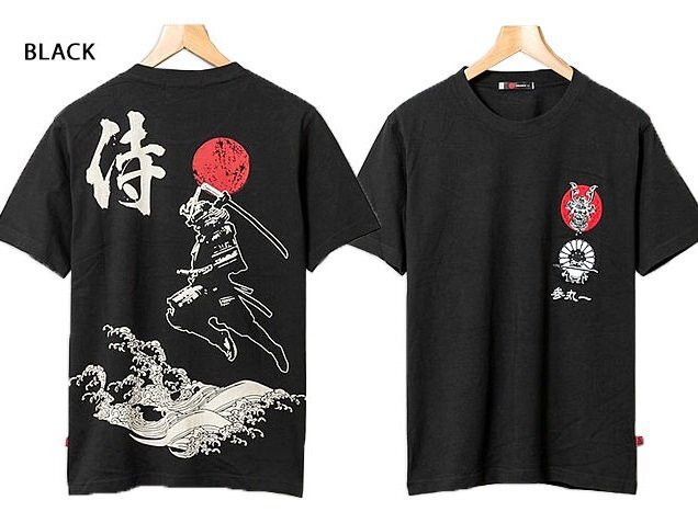 - 「兜侍蛙」半袖Tシャツ◆参丸一 ブラックLサイズ SM-30829 和柄 和風 さんまるいち カエル かえる 武将