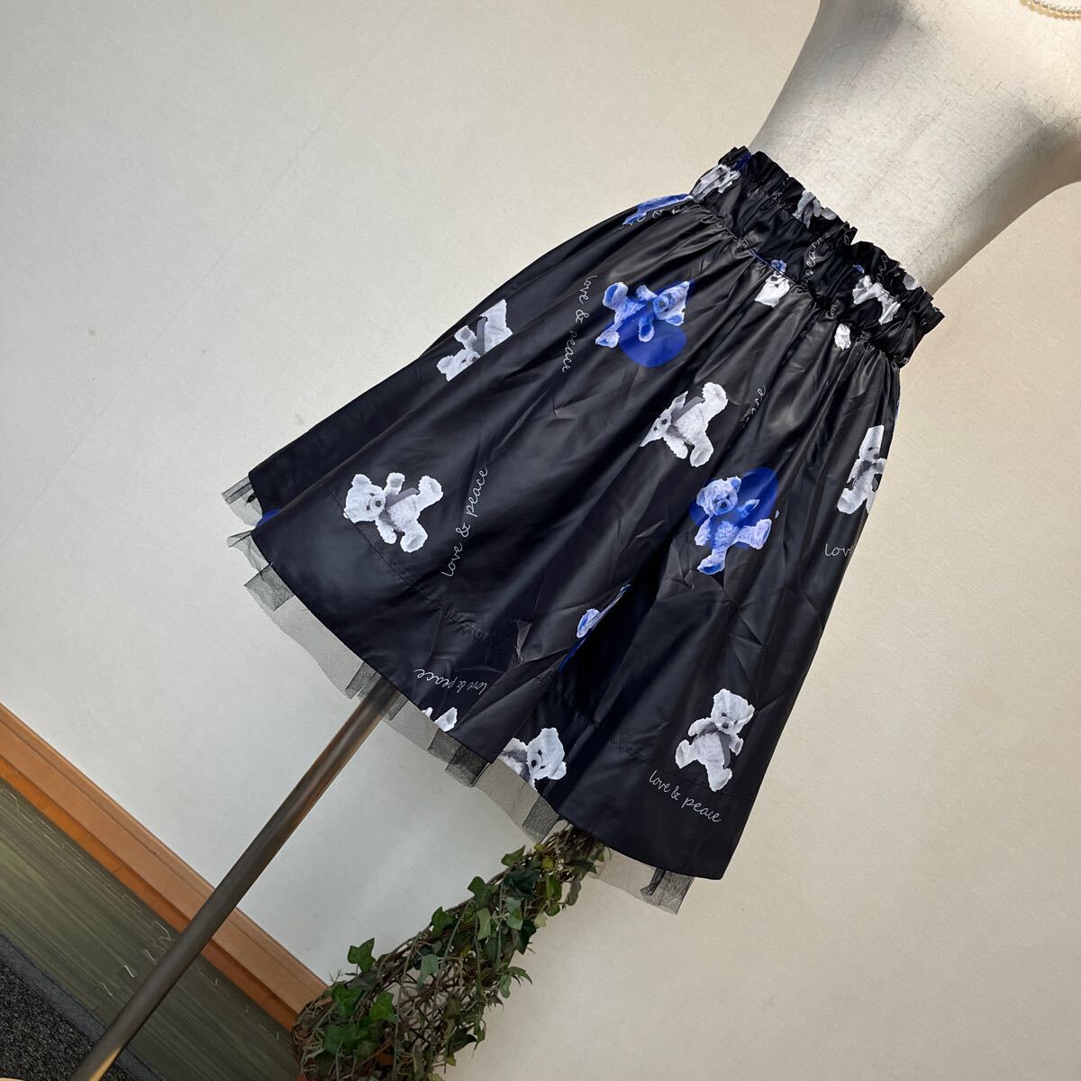 > 10-6新品 テディベア風ハートプリントひざ丈フレアスカートチュールレイヤード風スカート くまちゃんハイウエスト 9号 M