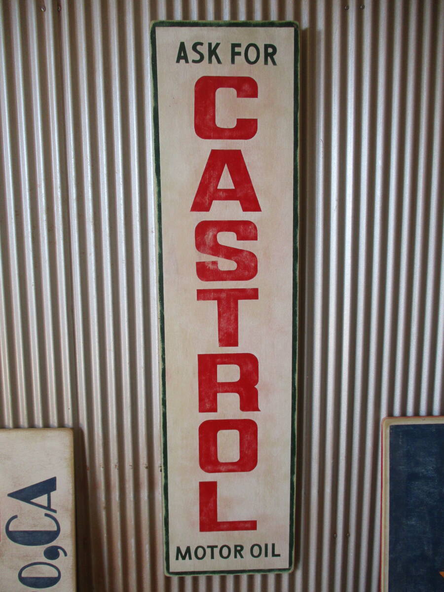 > インテリア木製看板 CASTROL OIL検)アドバタイジング企業販促ガレージカスタムアメ車ハーレーダビッドソンUSA50s60s70s