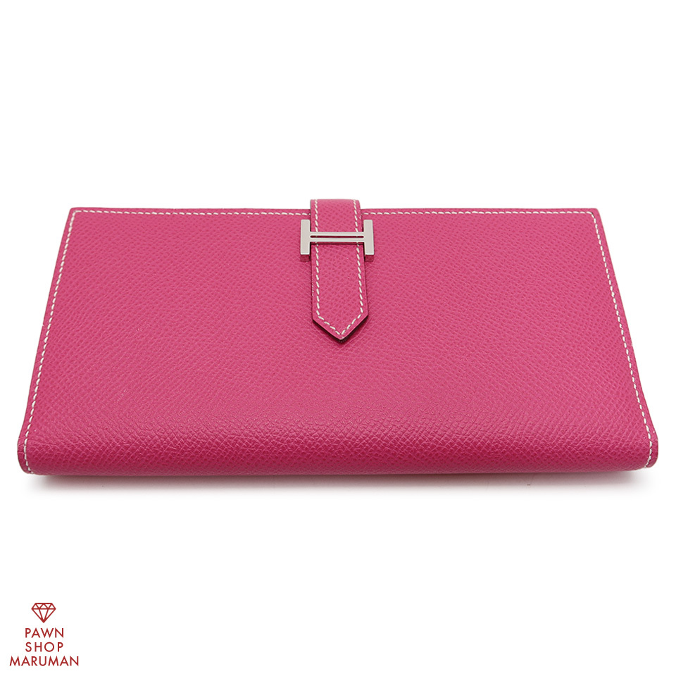 - エルメス ベアンスフレ [Q]刻印 ヴォーエプソン ローズティリアン×シルバー金具 【丸万質舗】