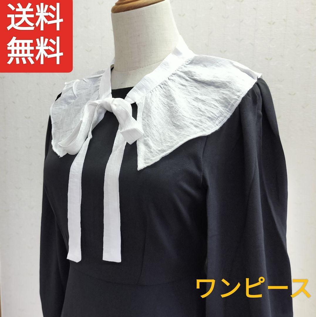 - 【送料無料】レディース 2WAY フリルの襟付き 長袖ワンピース ブラック【2】