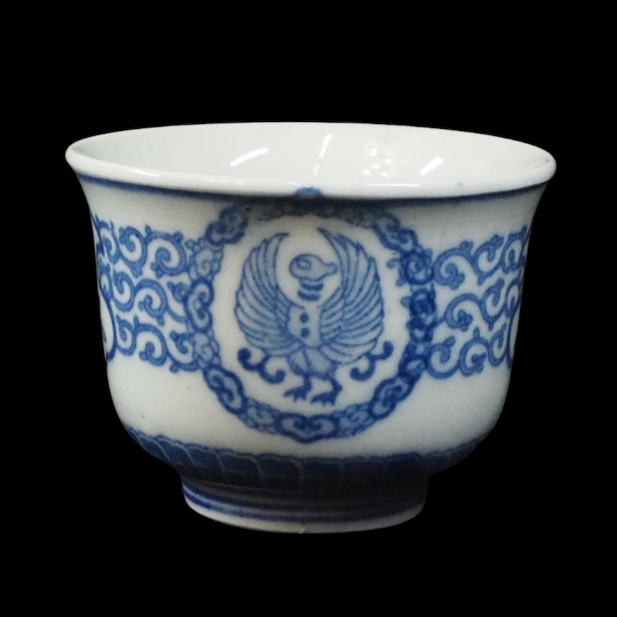- 大正〜昭和初期ビンテージ 有田焼 陶磁器 印判手 染付 「鳳凰文湯呑」 湯呑 TEF609