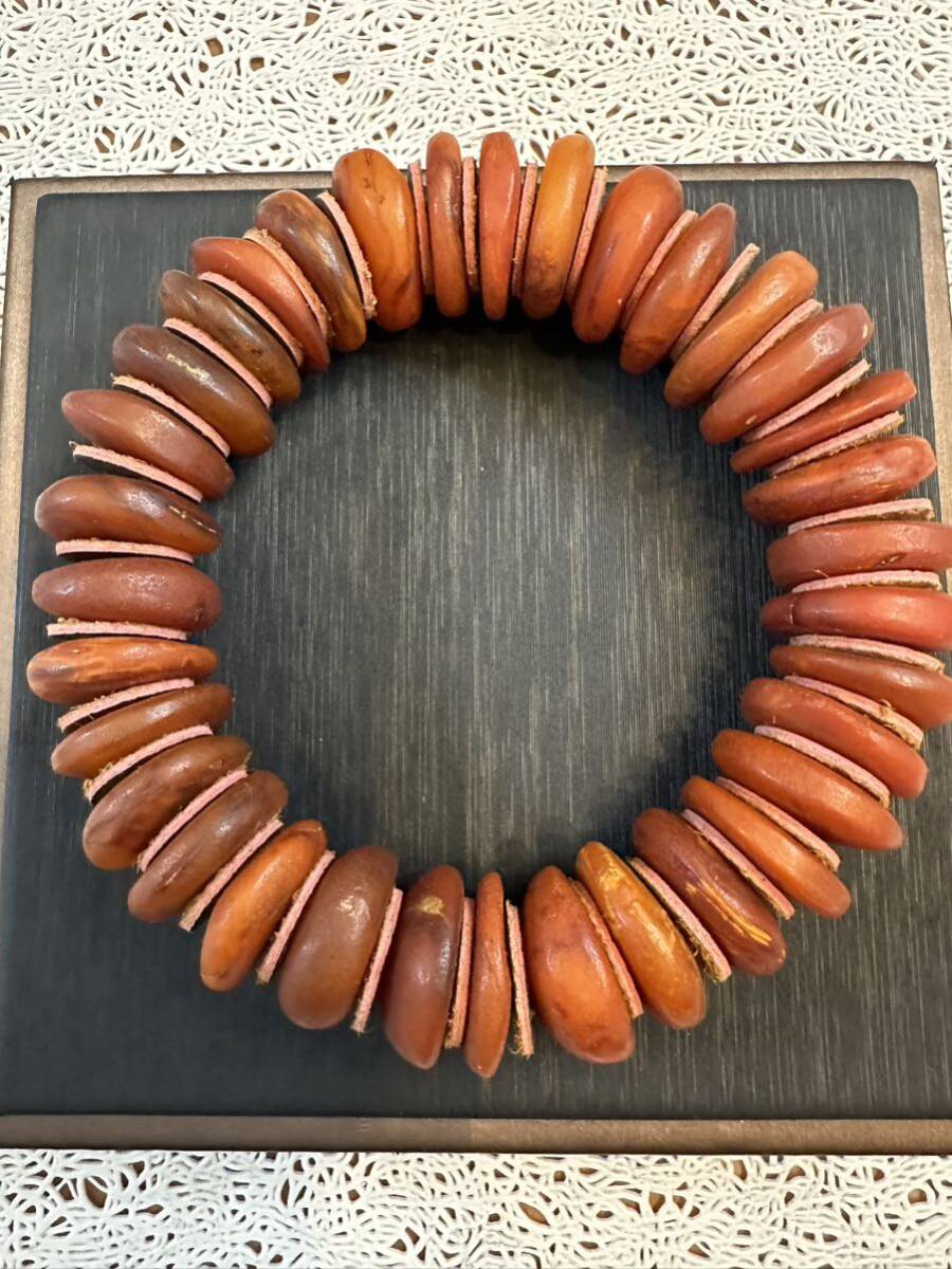 - V-912 天然 本琥珀 蜜蝋 老蝋 原石 ブレスレット 念珠 天然保証