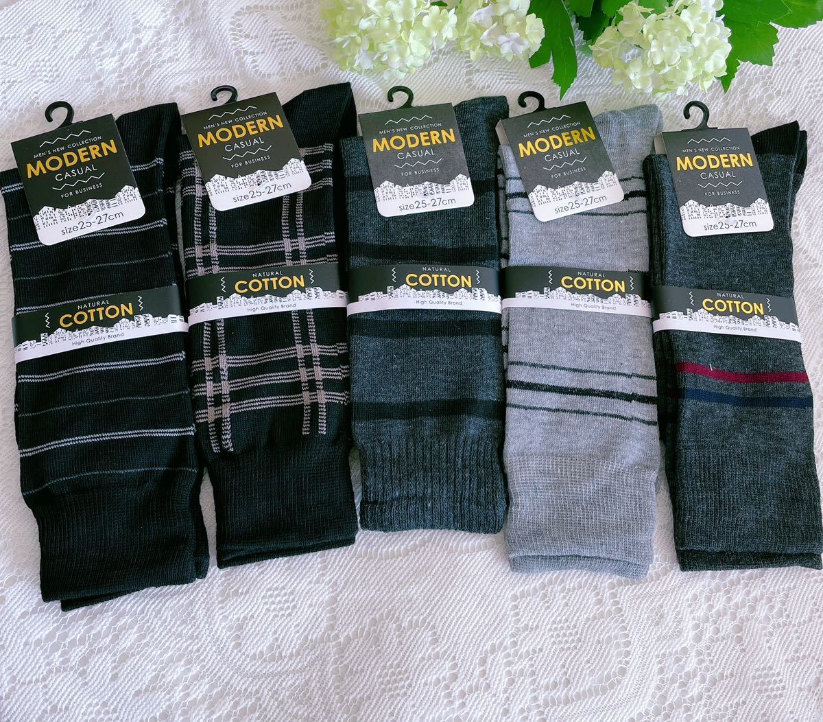 - 【年間定番】紳士綿混柄ソックス 5種アソート B