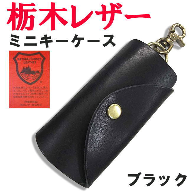- ブラック 黒 栃木レザーミニキーケース 32 フルベジタブルタンニングレザー