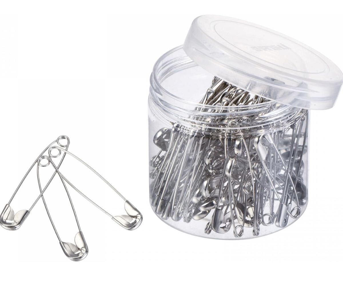 - 【丈夫で変形しにくい】安全ピン 45 mm メタルソーイングピン ボックス付き オフィスホーム用 シルバートーン 300個