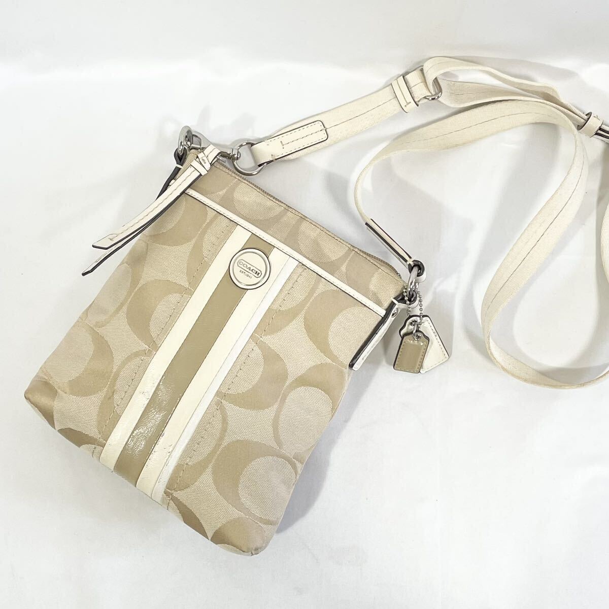 - 正規品 コーチ COACH ミニ ショルダーバッグ シグネチャー サコッシュ 白 ホワイト ベージュ ポシェット 肩掛け 斜め掛け 鞄 かばん