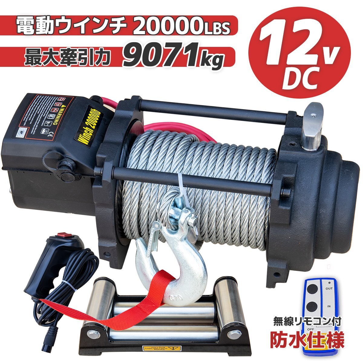 - 【営業所止め】電動ウィンチ 12v 20000LBS ウインチ DC12V 防水 強力 荷揚げ 引き上げ 運搬 有線コントローラー ボート ハイパワー