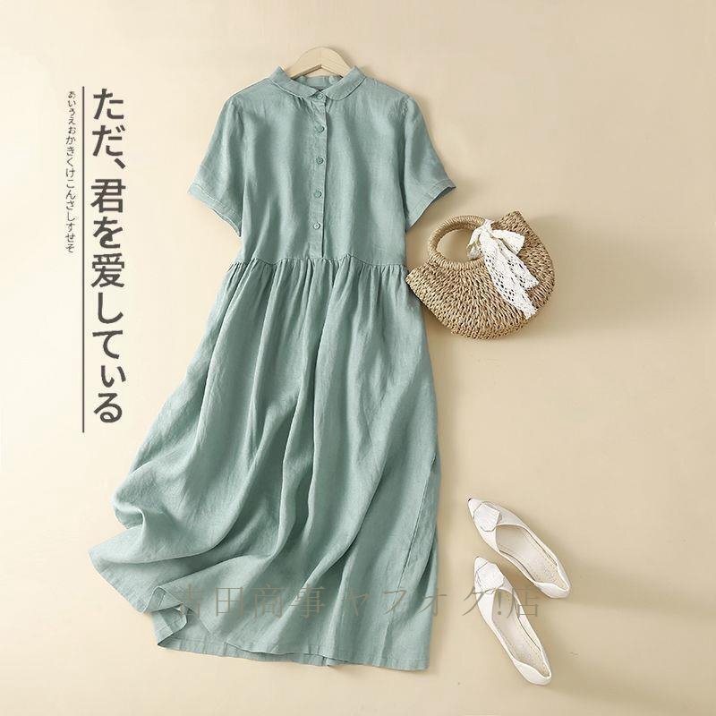 - A7862☆新品ワンピース シャツワンピース半袖夏ロングワンピース シャツワンピ ワンピ ハイウエスト フレアワンピースカジュアル涼しい