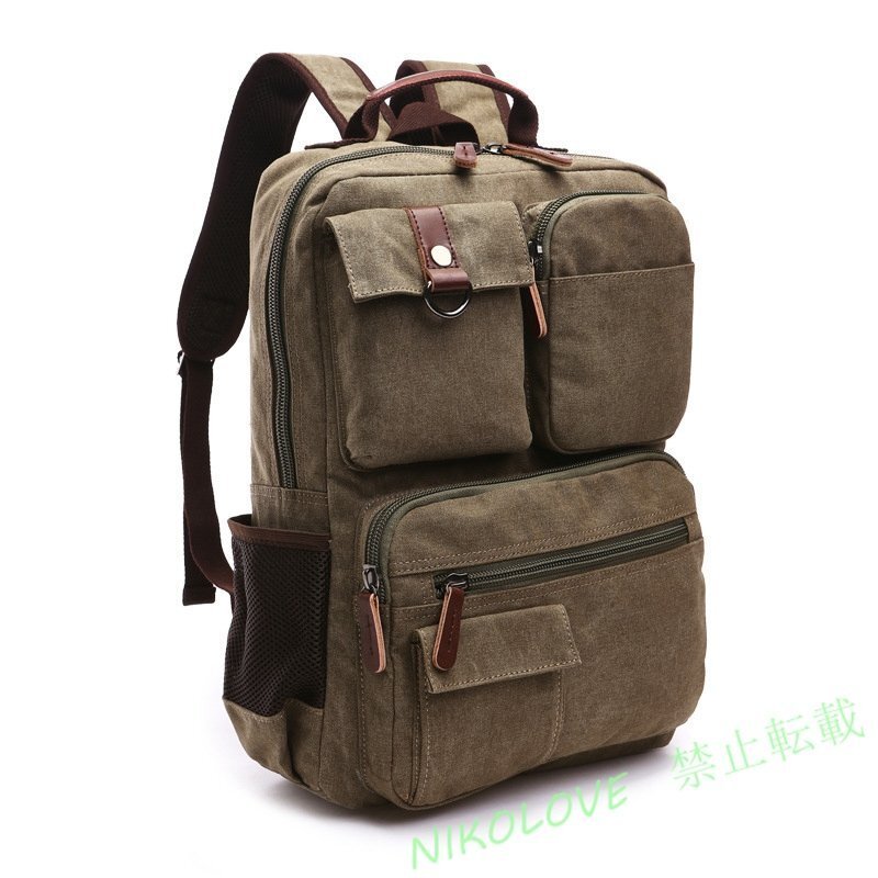 - 新品 リュックサック メンズ 帆布 カジュアル アウトドア パソコン 旅行用 オリーブ LF684