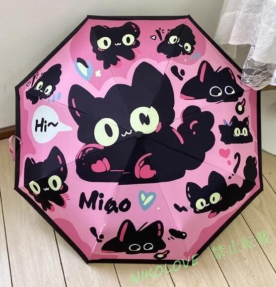 - 新品晴雨兼用 折りたたみ傘 夏 3つ折り 日傘 UVカット 遮光 遮熱 日焼け防止 高温対策 雨傘 日よけ 紫外線カット 98cm 黒猫柄 LJ895
