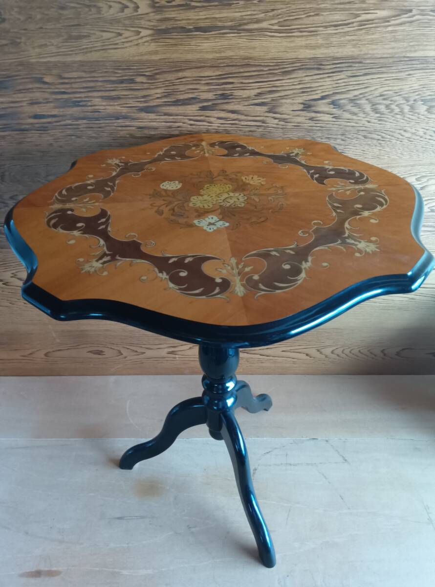 - 24090804 アンティーク風ミニダイニングテーブル サイドテーブル コーヒーテーブル 花柄 三本脚