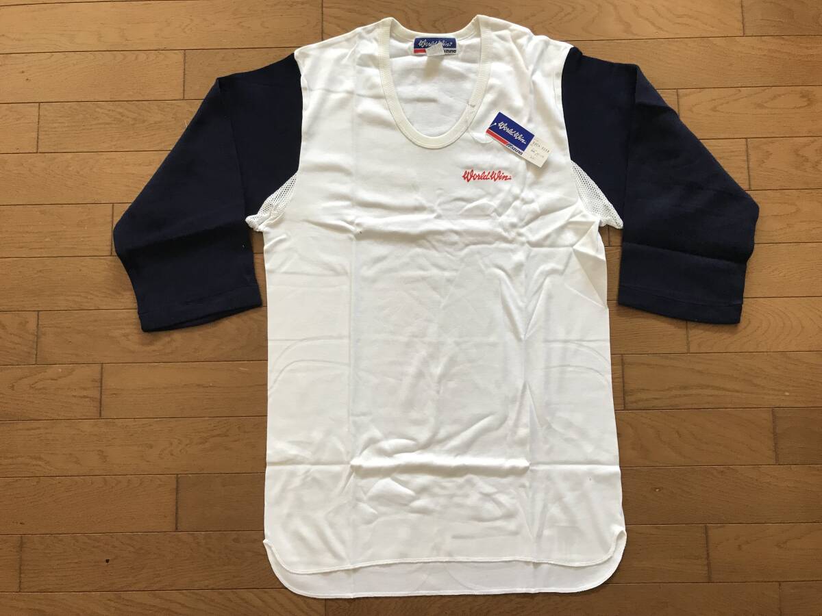 > 当時物 未使用 デッドストック Mizuno ミズノ WORLD WIN 野球アンダーシャツ 七分袖 U首 品番:52CA-3214 サイズ:EL HF4083