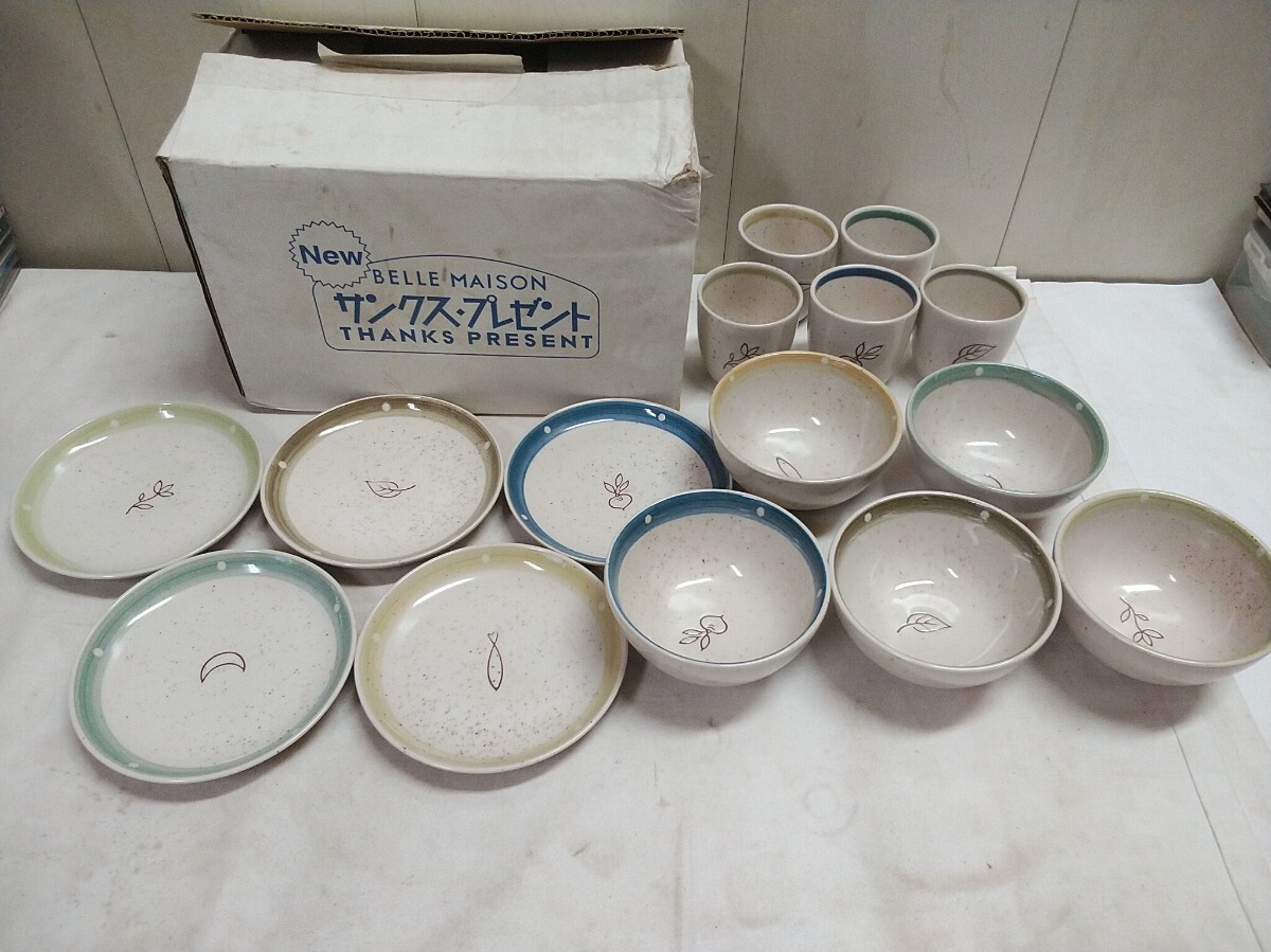 - 千趣会 ベルメゾン サンクスプレゼント 和食器揃【 湯呑みφ7×7.5cm・茶碗φ13×6.5cm・小皿φ15cm 】各5点セット 未使用在庫品
