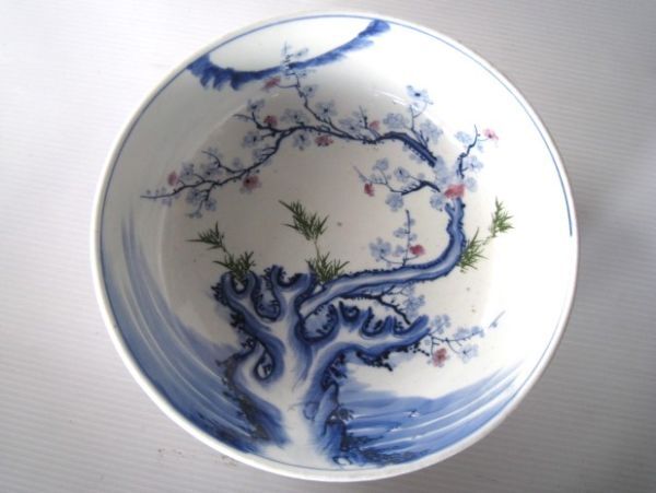 - アンティーク 陶器の深鉢 皿 梅の木の柄 陶磁器 盛り皿 飾り皿 サイズ:外径28×H10㎝/15N6.27-19