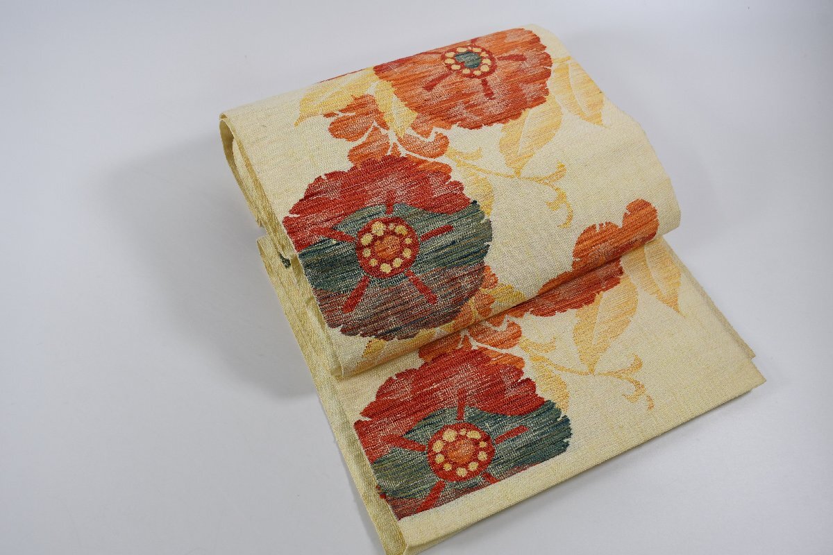 - 袋名古屋帯 花 紬 正絹 帯丈364cm ★着物屋 ne-11538 桜庭呉服店