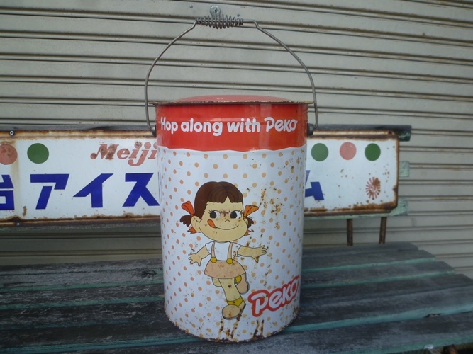 - 昭和レトロ 当時物・昔のペコ缶 ペコちゃん スツール缶 不二家 ペコ缶 椅子 チェア ビンテージ