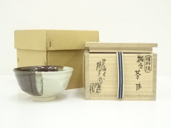 - ys7148283; 膳所焼 岩崎新定造 掛分茶碗(共箱)【道】