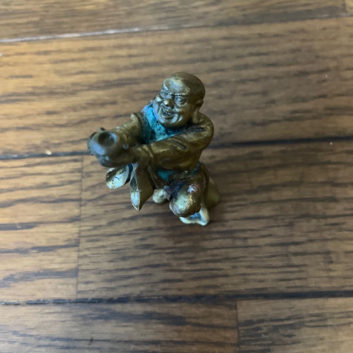 - 七福神 布袋様? ミニ置物 真鍮製?緑サビあり 最終処分特価