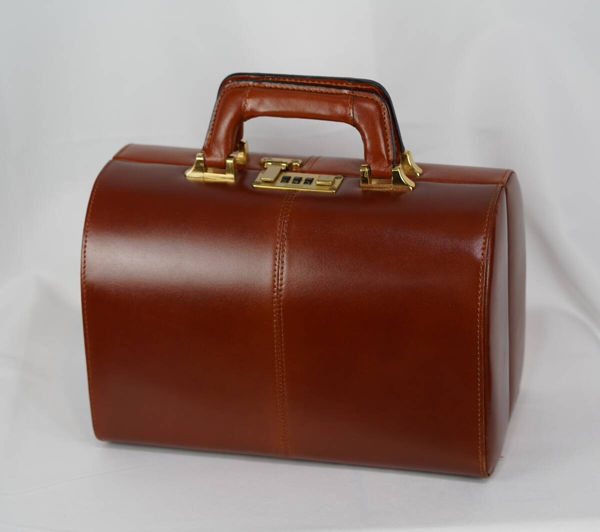 - アンティーク 本革 レザー バッグ ミニトランク 小型アタッシュ ブラウン ダイヤルロック金具