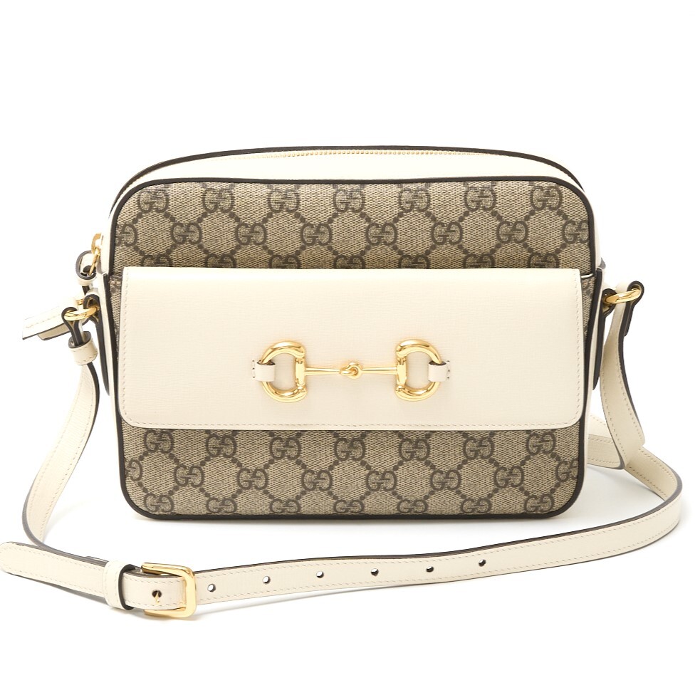 > GUCCI グッチ 〔グッチ ホースビット 1955〕スモール ショルダーバッグ 645454 クロスボディBAG GGスプリーム×レザー ベージュ×ホワイト