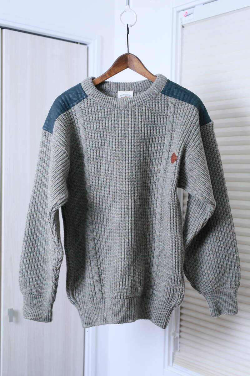 オールド ヴィンテージ ニュージーランド製 McDonald マクドナルド レザーパッチ加工 ピュアウールニットセーター