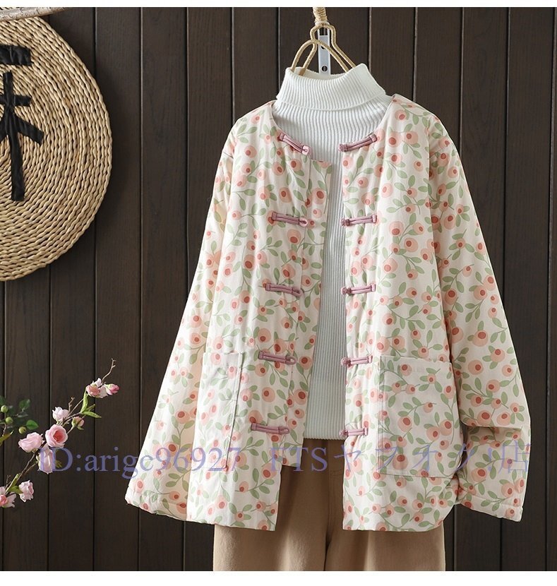 - A6101☆新品秋冬 復古 ゆったり大きいサイズ 花柄 裏起毛 プリント 暖かい 中綿 綿コート ミモレ丈コート M~XXL