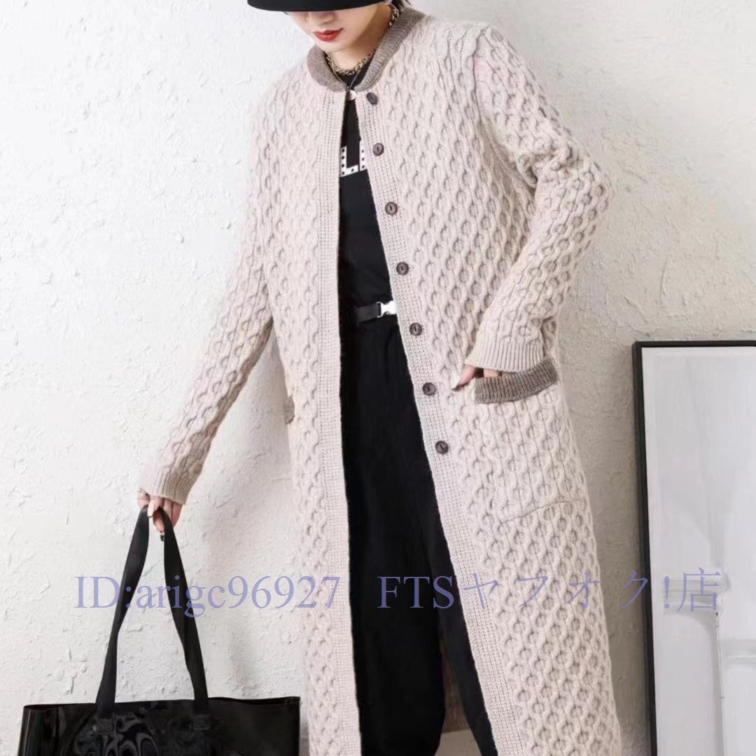 > A6657☆新品秋冬 超綺麗 ニット ロングコート カシミヤ混 厚地 ロング丈 カーディガン ニット 気質 セーター コート