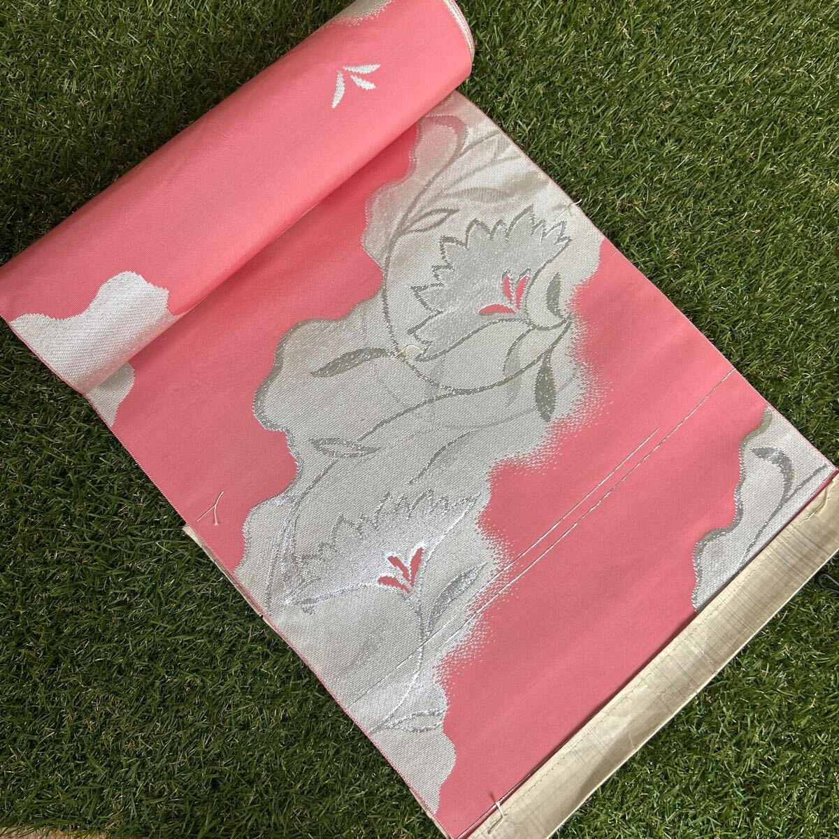 - ★反物 着物 生地 ピンク花柄 当時もの リメイク★