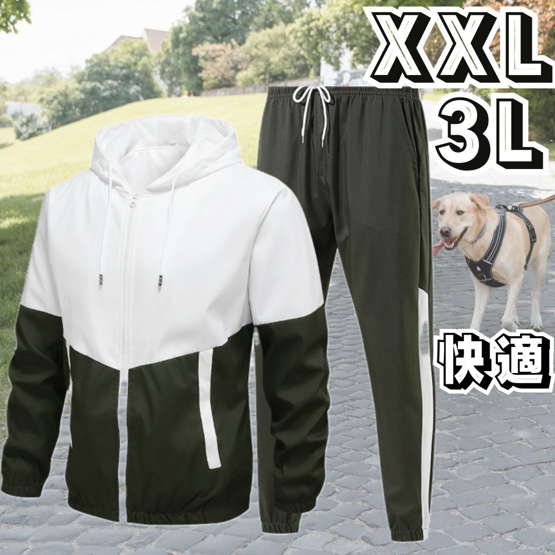 - セール★メンズ スポーツウェア トレーニング 上下セット パーカー ランニング ウォーキング★大きいサイズ XXL 3L 2XL★オリーブグリーン