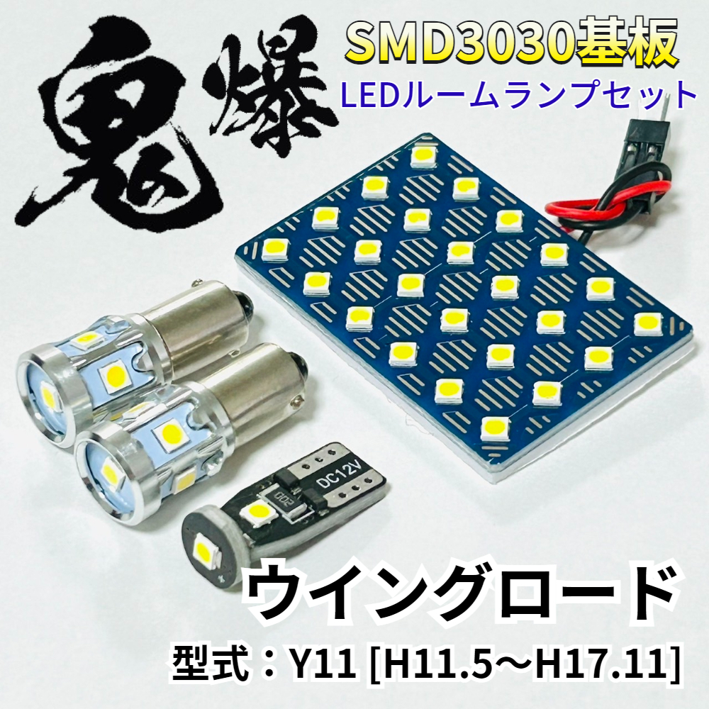 - ウイングロード Y11 [H11.5~H17.11] ニッサン LED ルームランプ 車用 T10 鬼爆基板 SMD 3030 ルーム球 室内灯 車内灯 パーツ 車検対応