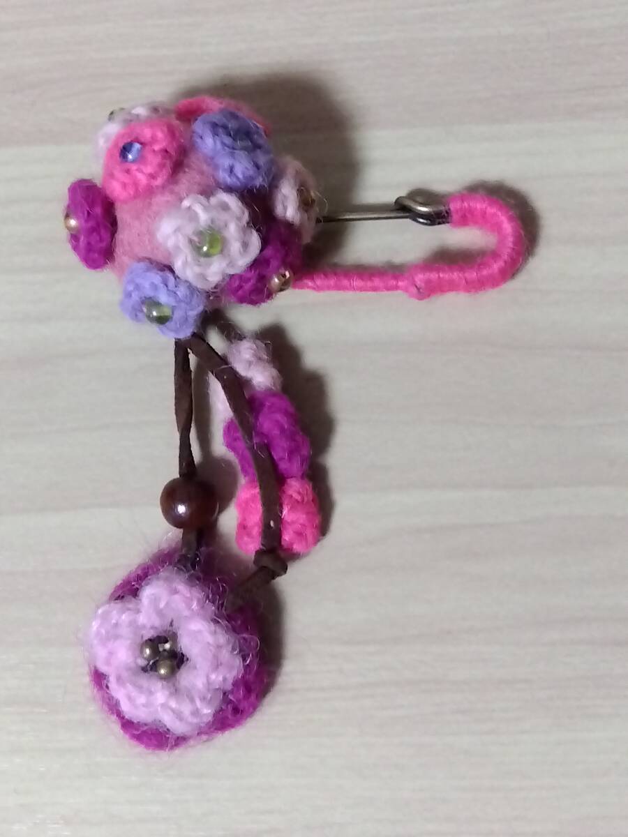 - 未使用品 即決\580 ハンドメイド 羊毛フェルト ブローチ ネパール製