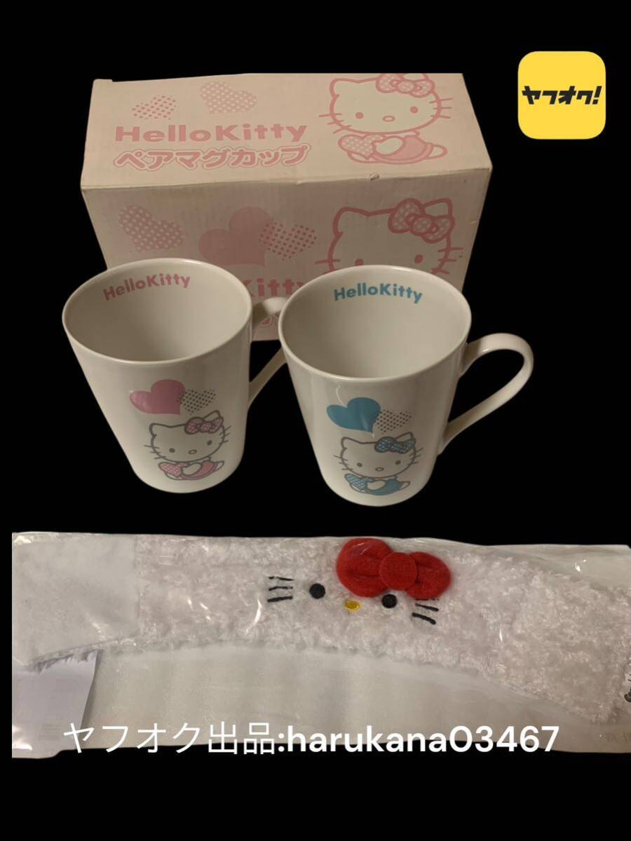 > 当時物 Hello Kitty ハローキティ 陶器 ペア マグカップ ピンク ブルー ハート 箱付き おまけ カップスリーブ サンリオ 2006 2018年