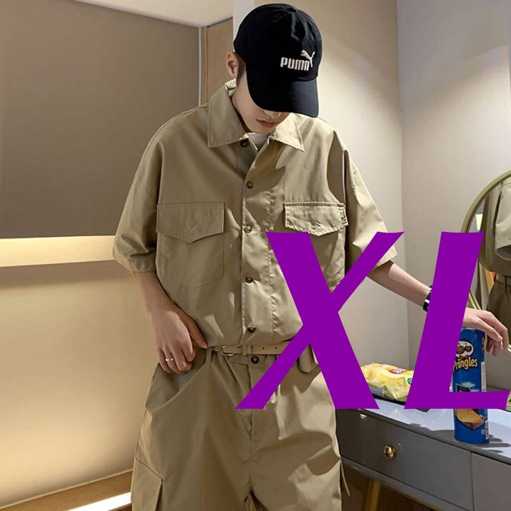 > セットアップ つなぎ 作業着 サロペット オーバーオール オールインワン アウトドア ポーチ 半袖 短パン トレンド ストリート ベージュXL
