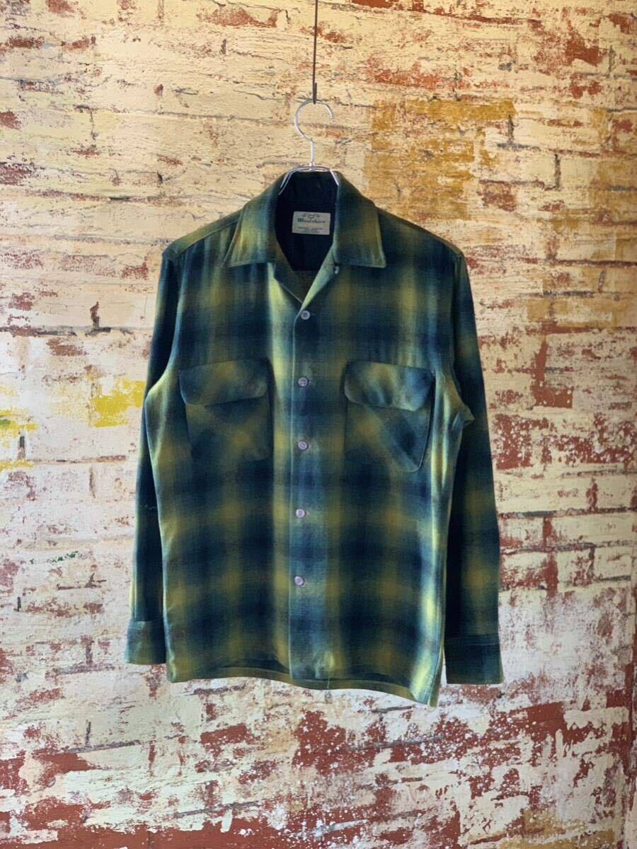 > ~70s Woolshire OMBRE OPEN COLLAR WOOL SHIRT ヴィンテージ オンブレチェック オープンカラーシャツ ウールシャツ アメカジ 60s 送料無料