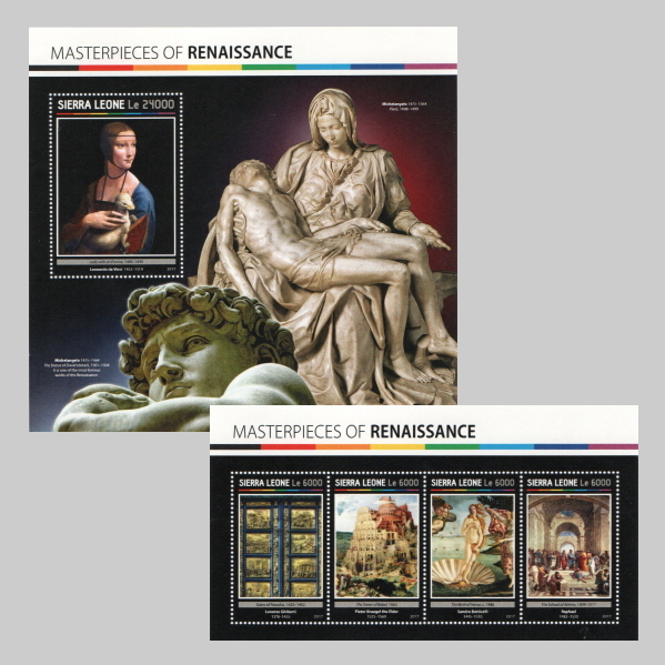 - ■シエラレオネ切手 2017年 ルネサンス / ダビンチ・ミケランジェロ・ボッティチェッリ他 シート+4種シート