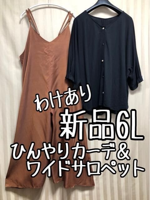 - 新品☆6L♪黒系カーデ&茶系サテン上品ワイドサロペット♪わけあり☆x593