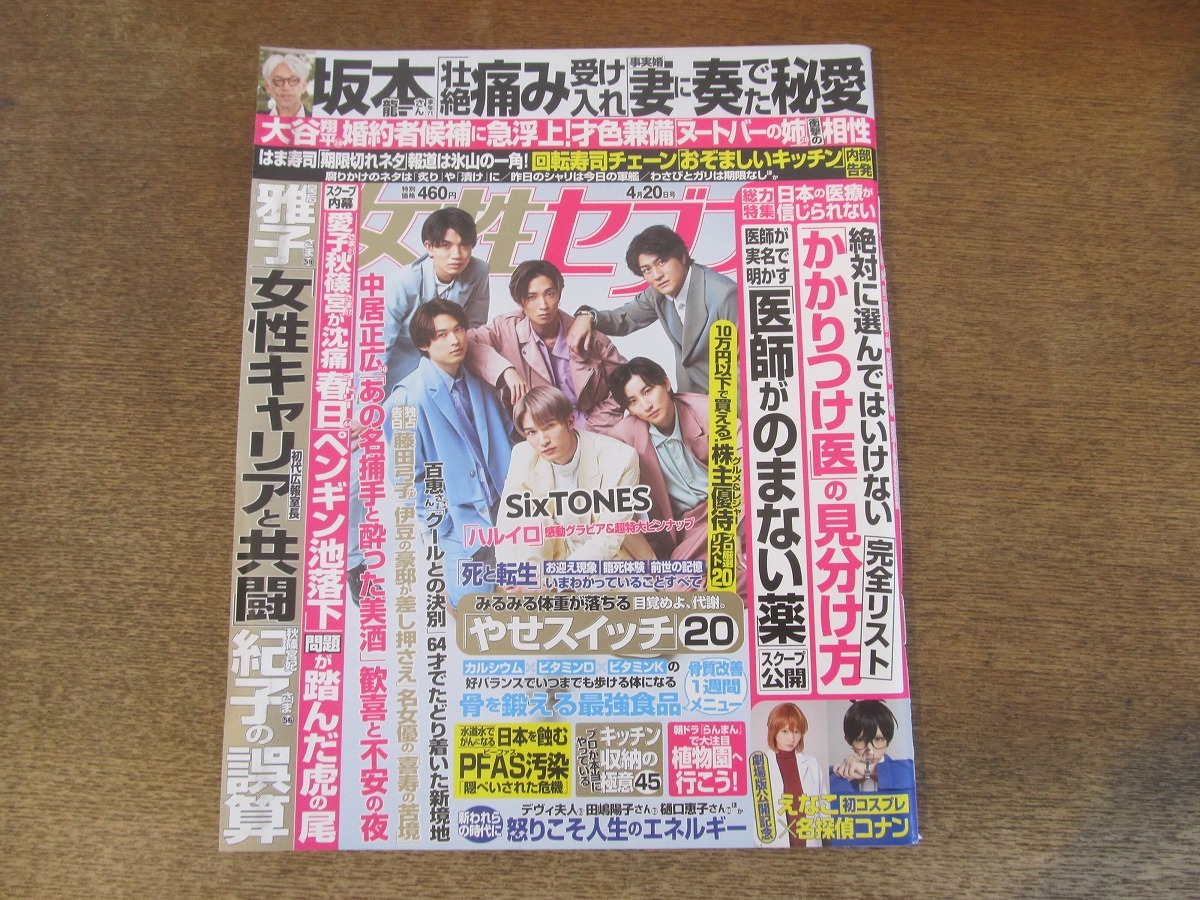 > 2409TN●女性セブン 2023.4.20●表紙&ピンナップ:SixTONES/坂本龍一/えなこ×名探偵コナンコスプレ/中居正広/大谷翔平/西畑大吾/神木隆之介