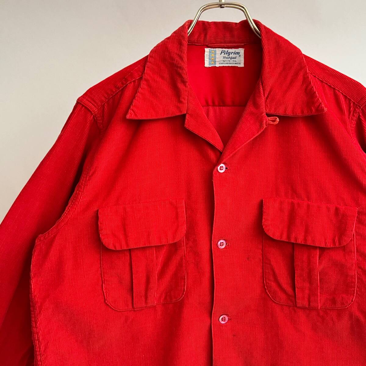 > 希少《 Good Condition / PILGRIM 》50s 60s 美品【 ピルグリム 赤 レッド M コーデュロイ ボックスシャツ ビンテージ 】