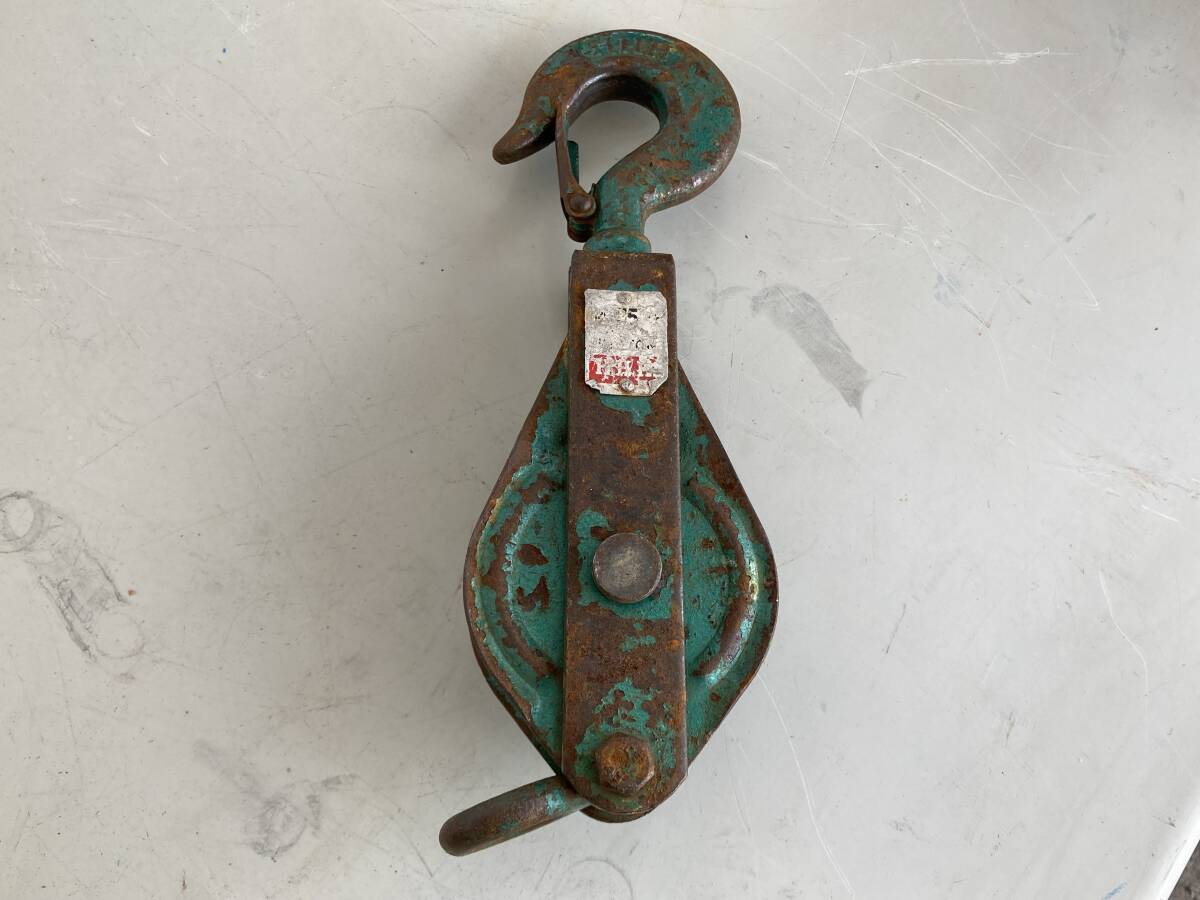 - ①HHH スリーエッチ 強力型滑車 フック型 一車スナッチ 75mm 使用荷重0.5t